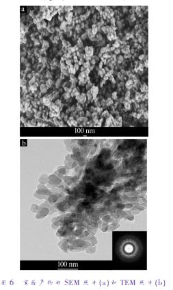 圖6分別為實驗產物的SEM和TEM照片。由圖6a可以看到,粉末為均勻的粒狀產品,無塊狀產物出現(xiàn)。從圖6b可見,產物為粒狀顆粒,大小尺寸均小于100nm,其SAED圖可看到多個同心圓的衍射環(huán),說明納米磷酸鋅是一結晶性良好的多晶結構。
